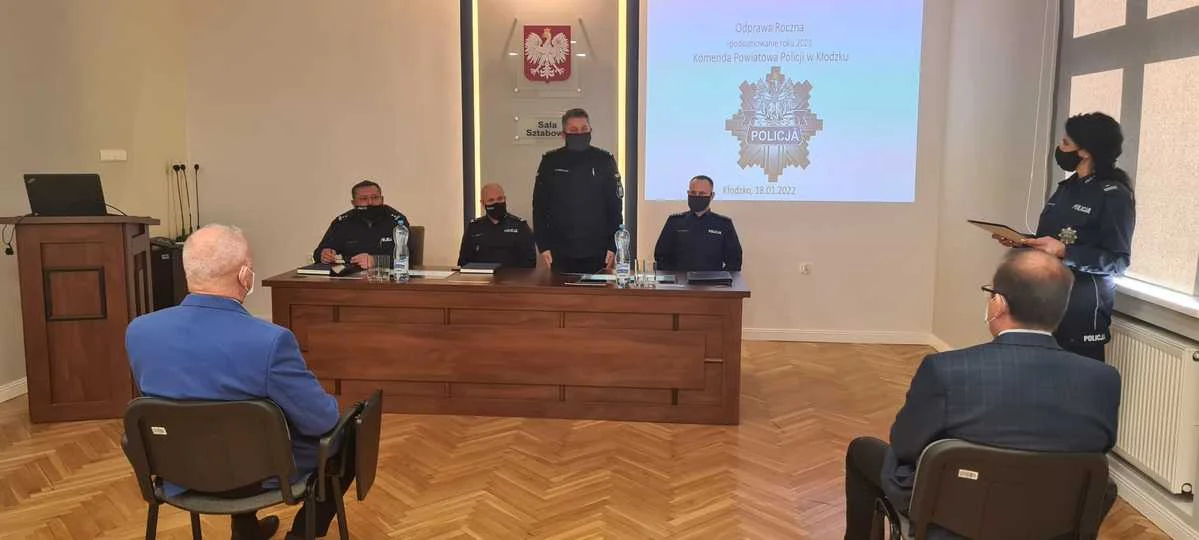 Komendant Powiatowy, podinspektor Rafał Siczek, podsumował wyniki pracy kłodzkich policjantów za 2021 rok oraz zaprezentował priorytety działań na rok 2022 w pionach prewencji, kryminalnym i logistyki.
