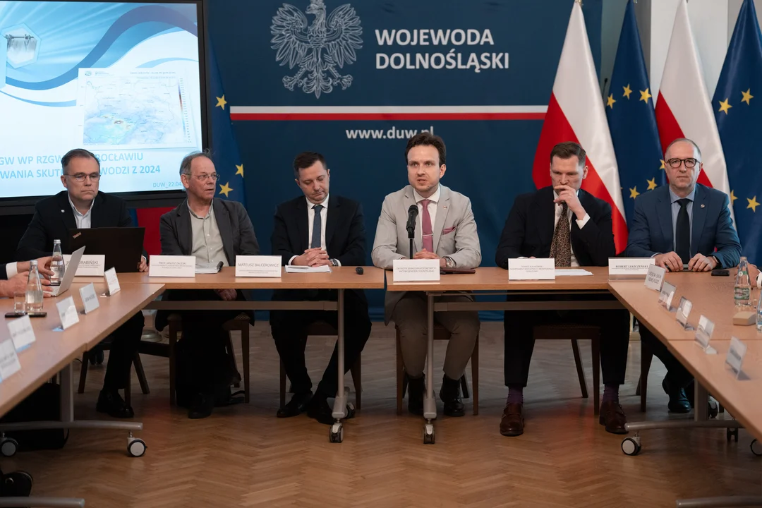 Powódź 2024. Wtorkowe spotkanie zostało zorganizowane z inicjatywy Państwowego Gospodarstwa Wodnego Wody Polskie. Wśród uczestników znaleźli się m.in.: Tomasz Kułakowski, wicedyrektor Departamentu Współpracy i Monitoringu Odbudowy, I wicewojewoda dolnośląski Piotr Sebastian Kozdrowicki, pełnomocnik wojewody ds. usuwania skutków powodzi Robert Leszczyński, wiceprezes Wód Polskich Mateusz Balcerowicz oraz prof. Janusz Zaleski.