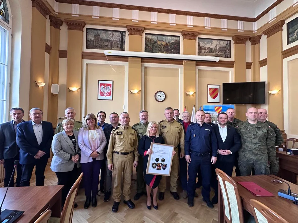 Spotkanie zakończyło się miłym akcentem. służby mundurowe przekazały Staroście Kłodzkiej wyjątkowy upominek jako wyraz wdzięczności za owocną współpracę i wsparcie.