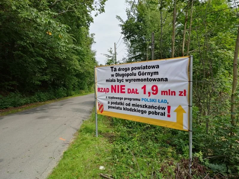 Powiat Kłodzki. Od kilku dni na terenie naszego powiatu mogliśmy zauważyć banery informujące o braku dofinansowania z rządowego programu „Polski Ład”. W poniedziałek przedstawiciele Zarządu Powiatu Kłodzkiego zorganizowali konferencję prasową w tej sprawie.