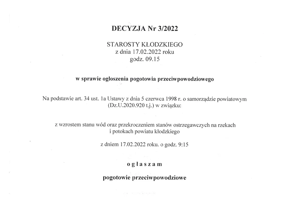 Powiat Kłodzki. Silne wiatry i intensywne opady deszczu przyczyniły się do wzrostu stanów wód w rzekach i potokach. Wczoraj o godz. 9:15 starosta ogłosił pogotowie przeciwpowodziowe.