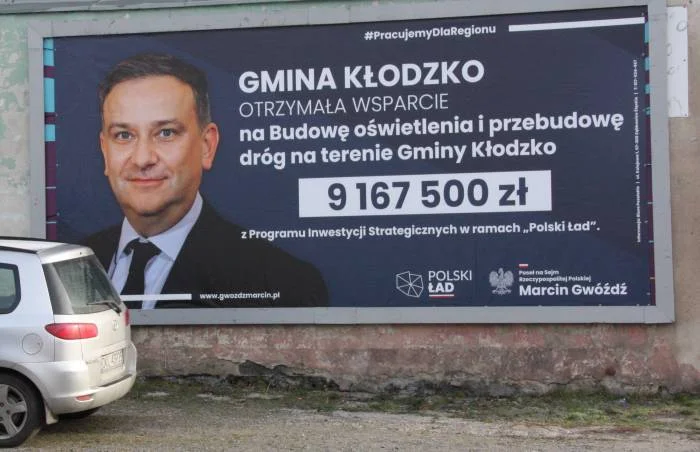Powiat Kłodzki. Kampania wyborcza przed wyborami parlamentarnymi trwa od kilku miesięcy. Teraz weszła na billboardy. Te ze zdjęciem posła Marcina Gwoździa (PiS) można w powiecie kłodzkim zobaczyć już w kilku miejscach, między innymi w Bierkowicach.