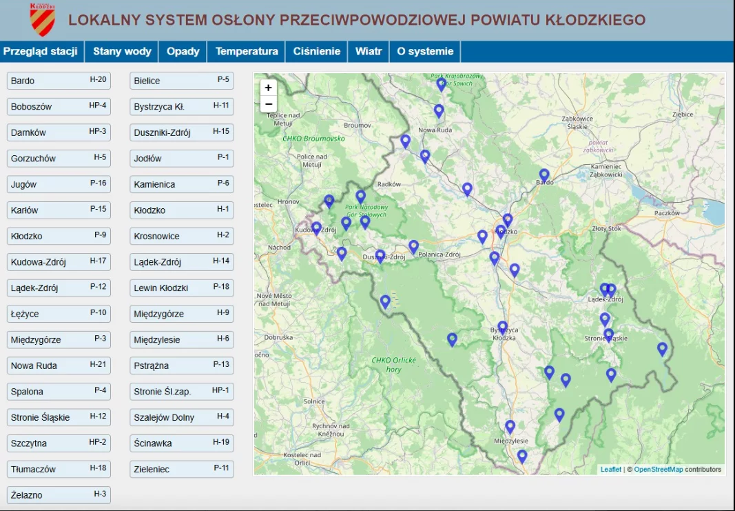 Autor: Starostwo Powiatowe w Kłodzku | Opis: LSOP, bazujący na 34 stacjach pomiarowych, odgrywa kluczową rolę w monitorowaniu zagrożeń hydrologicznych. Podczas powodzi we wrześniu 2024 roku, system zanotował ponad 30 milionów wyświetleń, stając się głównym źródłem informacji zarówno dla mieszkańców, jak i turystów oraz służb kryzysowych.