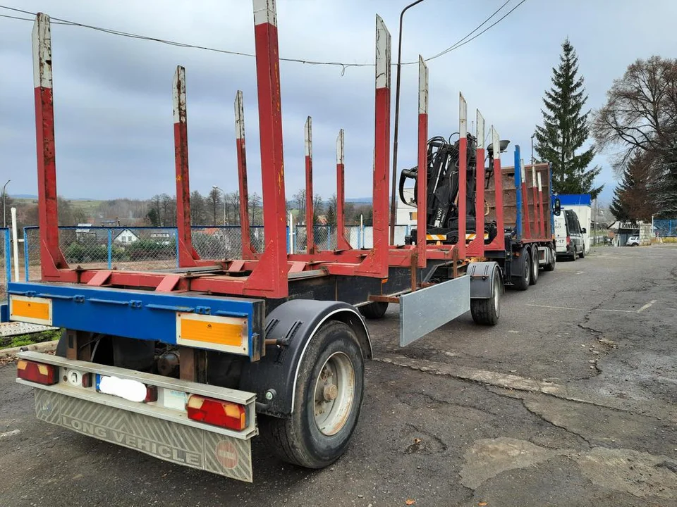 Powiat Kłodzki. Uwagę inspektorów z kłodzkiego oddziału Inspekcji Transportu Drogowego przykuł zestaw do przewozu drewna poruszający się po górskiej drodze z prędkością ok. 35 km/h, tworzący za sobą kilometrowy korek.