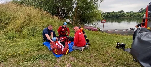 Funkcjonariusze przekonali się, że ratowanie tonącego nie jest łatwym zadaniem, nawet jeśli dysponujemy łódką i fachowym sprzętem do udzielania pierwszej pomocy.