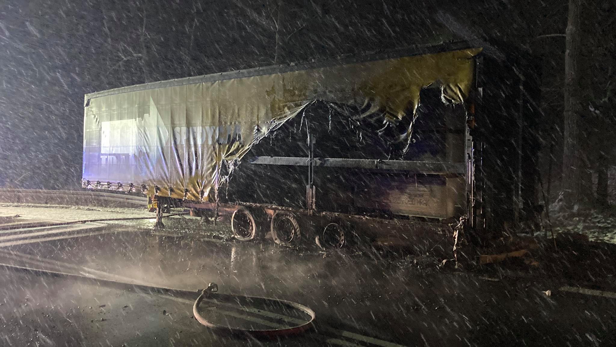 Powiat Kłodzki: We wtorek, 12 stycznia o godzinie 19:19 do straży pożarnej w Kłodzku wpłynęło zgłoszenie o pożarze naczepy tira.