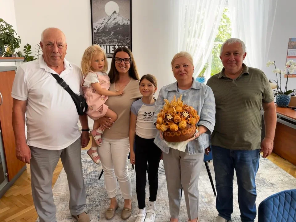 Symboliczny i jakże wymowny bochen chleba przekazali staroście w podziękowaniu za wsparcie, przychylność i pomoc w tej trudnej sytuacji wojennej w jakiej przyszło żyć naszym sąsiadom