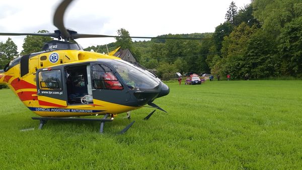 Tego samego dnia ratownicy otrzymali również zgłoszenie o wypadku rowerzysty na Trasie Enduro Srebrna Góra - NS BIKES. W wyniku upadku rowerzysta doznał poważnych urazów. Przybyli na miejsce ratownicy podejrzewali uraz obojczyka, barku i kręgosłupa. Podjęto decyzję o zadysponowaniu Lotniczego Pogotowa Ratunkowego.