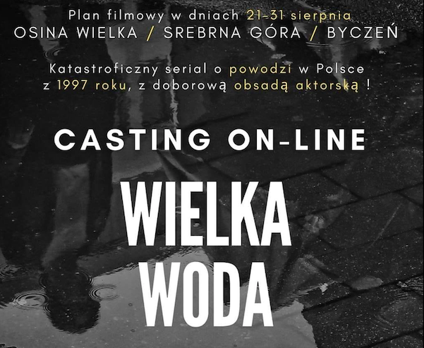 Powiat Kłodzki. Powódź, która tak mocno dotknęła nasz powiat w 1997 roku zostanie przedstawiona w filmie katastroficznym "Wielka Woda". Film będzie kręcony między innymi w Srebrnej Górze. Tutejsze kąpielisko zamieni się podczas tegorocznych wakacji w plan filmowy. W związku z tym poszukiwani są statyści: kobiety i mężczyźni w wieku od 16 do 70 lat oraz zwierzęta gospodarskie: krowy, konie, kozy.