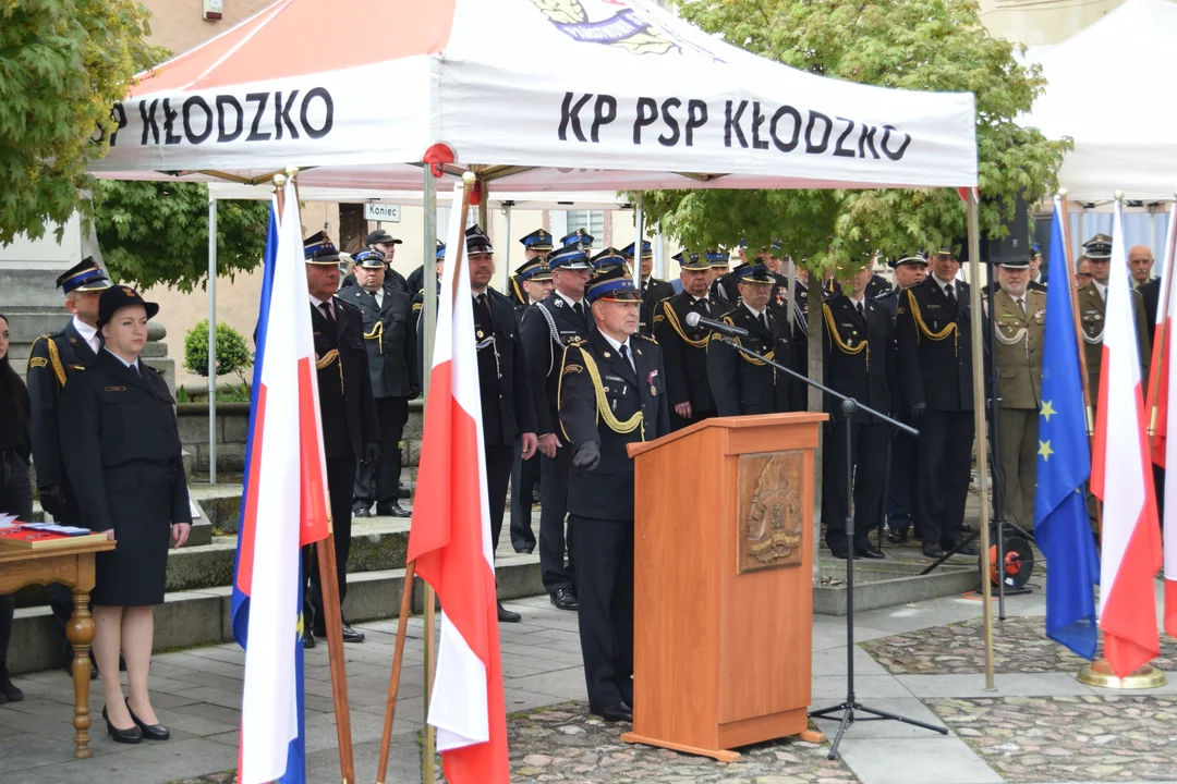 Przybyłych licznie zaproszonych gości powitał Komendant Powiatowy Państwowej Straży Pożarnej w Kłodzku - Rafał Chorzewski, który podkreślił, że to święto ludzi, którzy z oddaniem i poświęceniem pełnią służbę na rzecz innych.