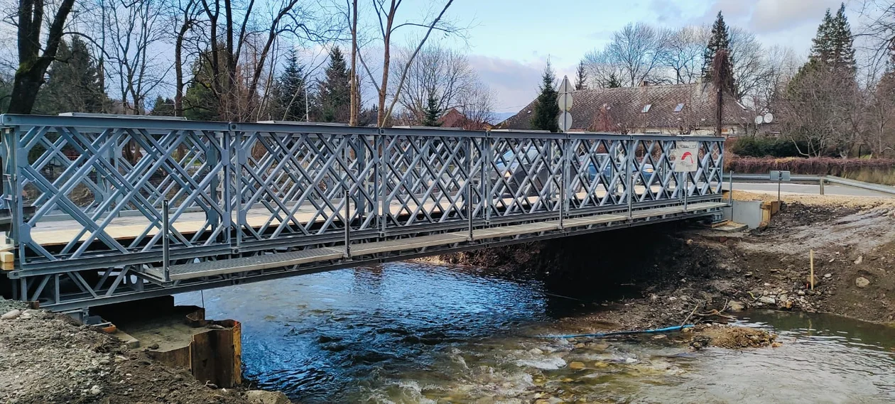 Powódź 2024. Warto jednak pamiętać, że na moście obowiązuje ograniczenie maksymalnej dopuszczalnej wagi pojazdów do pięciu ton. Most w Wilkanowie jest drugim tymczasowym mostem na drodze powiatowej, który został oddany do użytku. Most w Bielicach działa już od zeszłego tygodnia, co znacząco ułatwiło ruch w tej okolicy.