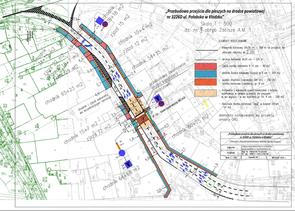 Przebudowywane przejście dla pieszych zlokalizowane jest w ciągu ul. Połabskiej w Kłodzku, przy skrzyżowaniu z ul. Łużycką.