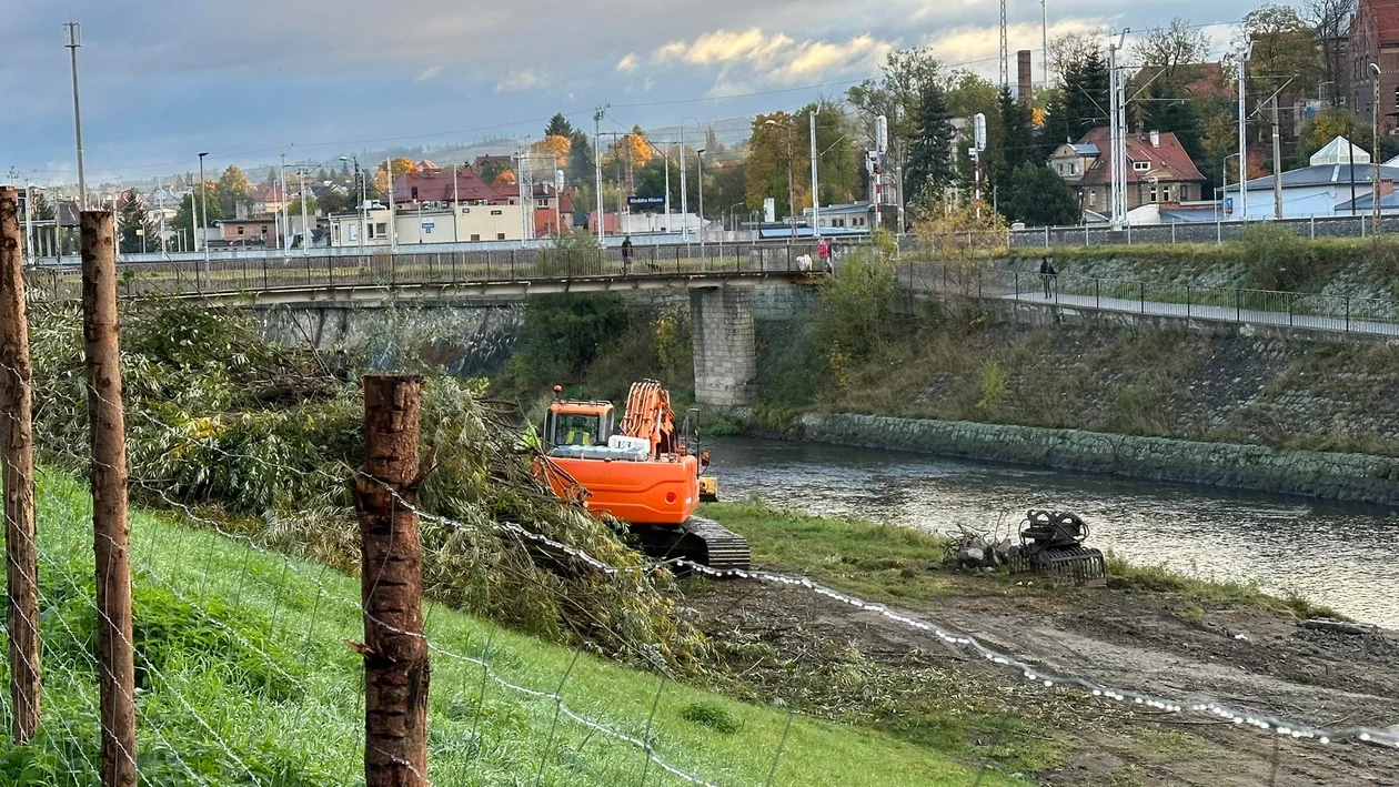 4 z 14![Remont koryta Nysy Kłodzkiej. Trwa wycinka drzew]()