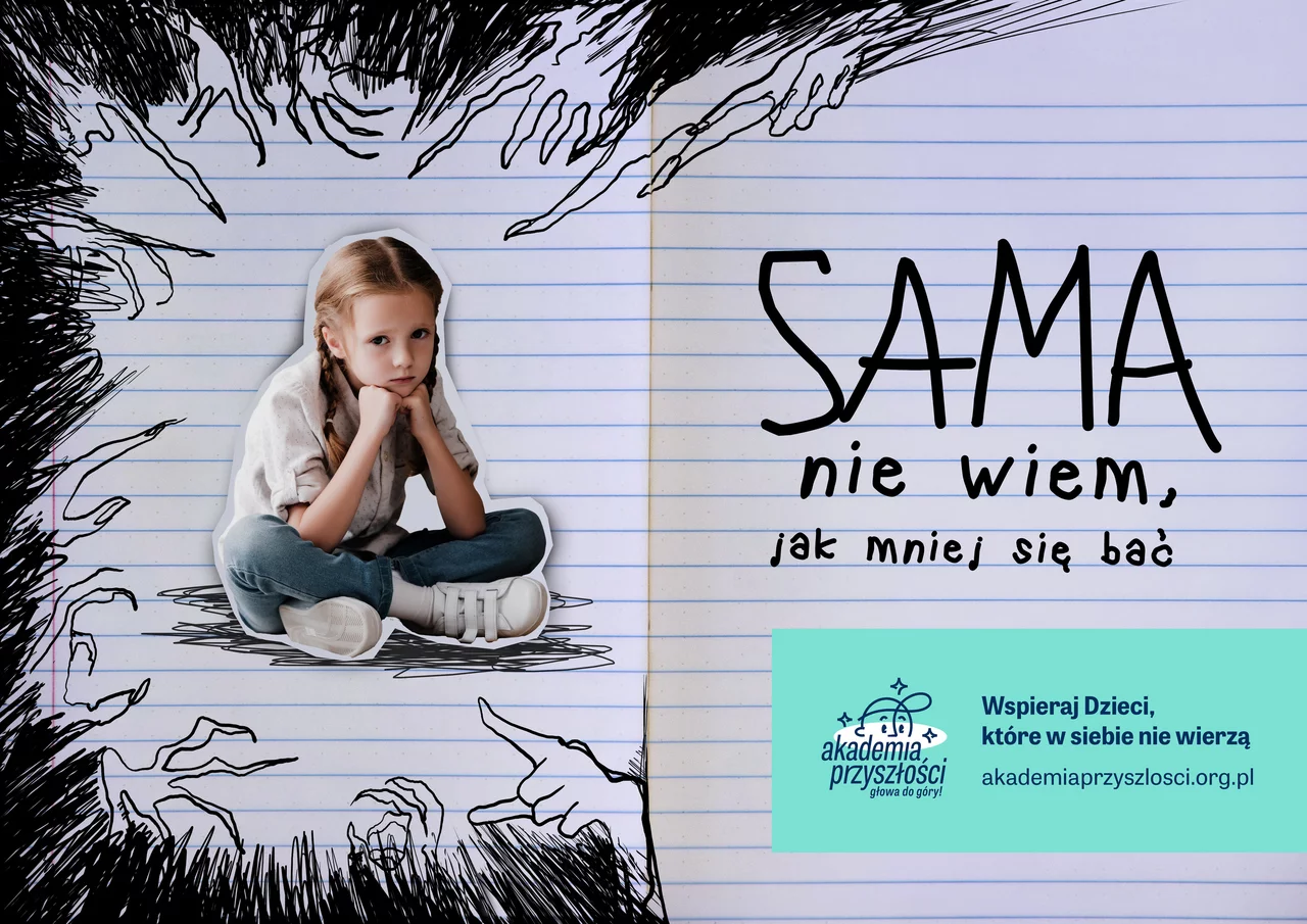 Dziecko samo może nie wiedzieć, jak… mniej się bać, jak znaleźć koleżankę lub kolegę, jak odezwać się do innych, czym jest wiara w siebie. Ze wsparciem darczyńcy lub darczyńczyni już nie będzie czuło się samo.Bądź wsparciem dla dziecka z Akademii Przyszłości, takiego jak Ola, która sama nie wie, jak mniej się bać. 10-latka chce być policjantką, aby świat był sprawiedliwy. Ale policjantka nie może się bać, a ona się boi. Czego? Wszystkiego. Czytania na głos, opinii innych, tego co będzie. „Bo nie wiemy, co będzie, a co, jeśli będzie źle? Albo jeśli będzie wojna?” Wtedy chciałaby mieć moc tworzenia np. prądu lub ognia, gdyby ich zabrakło. Mogłaby je dawać innym, może wtedy by ją polubili.