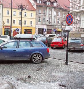 Samochody parkują na bystrzyckim rynku gdzie chcą i jak chcą. Stojące auta można zobaczyć między innymi na chodnikach i za znakami zakazu zatrzymywania się i postoju (zdjęcie). - Miejscowa policja udaje, że nie ma problemu. Kierowcy powszechnie łamią prawa drogowe, bo nikt ich nie dyscyplinuje mandatami i pouczeniami - mówią mieszkańcy pl. Wolności. Z policyjnych raportów wynika jednak, że mundurowi na pl. Wolności zaglądają dość często.