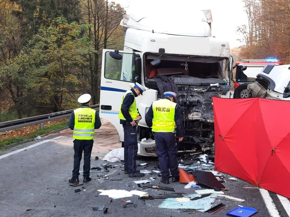Poza ciężarówką, która czołowo zderzyła się z busem, w wypadku uczestniczył jeszcze jeden samochód ciężarowy - najechał on na tył poprzedzającego go zestawu.