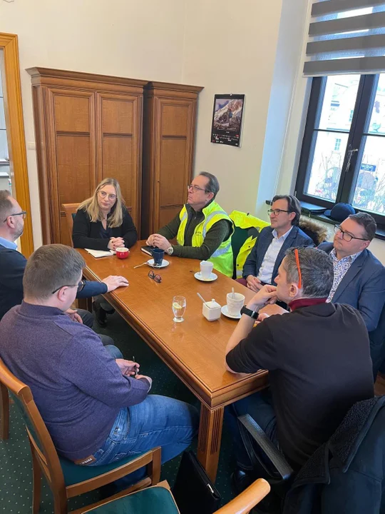 Powódź 2024. W spotkaniu udział wzięli: wicestarosta kłodzki, Piotr Marchewka, burmistrz Lądka-Zdroju, Tomasz Nowicki, zastępca burmistrza, Kazimierz Szkudlarek a także przedstawiciele Zarządu Dróg Powiatowych w Kłodzku.