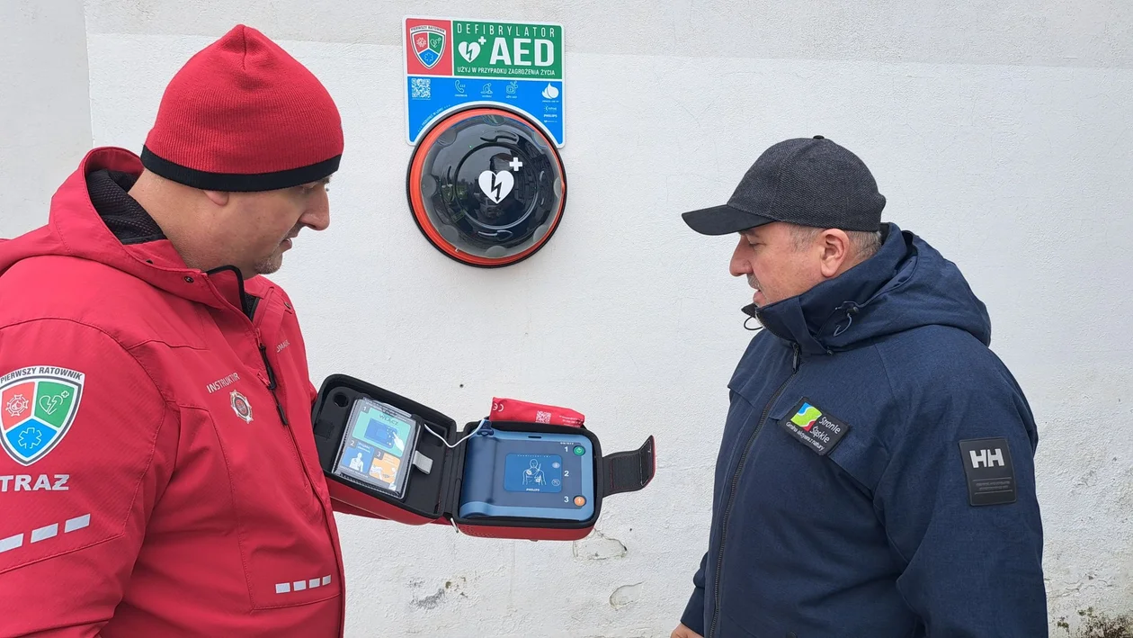 W czwartek, 16 stycznia Artur Cetnarski wraz z Piotrem Jaksoniem, koordynatorem powiatowym z powiatu kamiennogórskiego, dokonali instalacji nowego urządzenia AED na budynku Centrum Edukacji, Turystyki i Kultury przy ul. Kościuszki 18. To ważne miejsce, które codziennie odwiedza wiele osób, dlatego obecność AED znacząco podnosi poziom bezpieczeństwa.