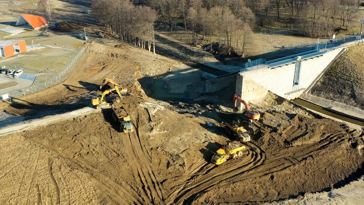 Obecnie, zgodnie z decyzją Głównego Inspektora Nadzoru Budowlanego z 13 stycznia 2025 roku, trwają prace nad formowaniem lewobrzeżnej części zapory ziemnej oraz budową grodzy kamienno-betonowej. Dodatkowo zabezpieczana jest odsłonięta część sekcji przelewowej. Wykonawca zabezpieczył już teren i rozpoczął niezbędne działania.