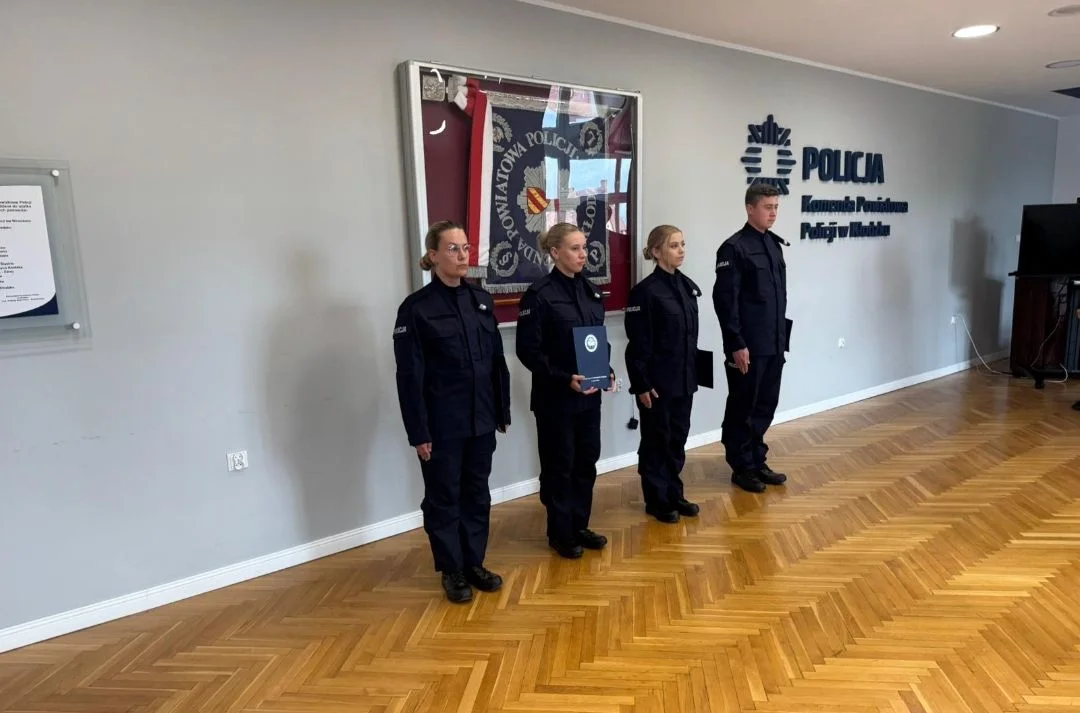 Komendant Powiatowy Policji w Kłodzku gratulował nowym funkcjonariuszom i życzył im zadowolenia oraz sukcesów w służbie.