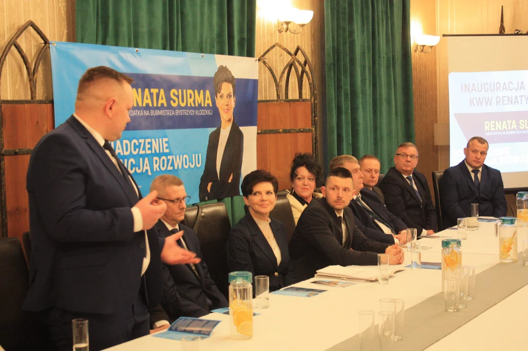 Gmina Bystrzyca Kłodzka. Burmistrz Renata Surma zainaugurowała kampanię na miesiąc przed wyborami. Zrobiła to w restauracji hotelu Castle (z ang. Zamek). Jej komitet wyborczy, jako jedyny zgłosił kandydatów we wszystkich 15 okręgach wyborczych. Nową twarzą w drużynie burmistrz Surmy jest Dawid Jarosz, znany szerszej widowni z programu „Ninja Warrior Polska” w Polsacie (na zdjęciu obok burmistrz Surmy). Aż 12 na 15 kandydatów to mężczyźni.
