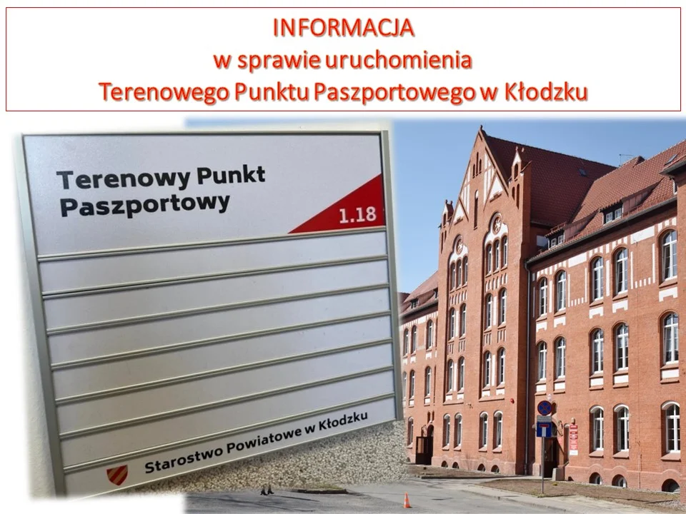 Uruchomienie Terenowego Punktu Paszportowego będzie możliwe po podpisaniu przez Wojewodę Dolnośląskiego Porozumienia z Powiatem Kłodzkim, a takowe będzie możliwe po „uzbrojeniu” siedziby w niezbędne łącza i sprzęt.