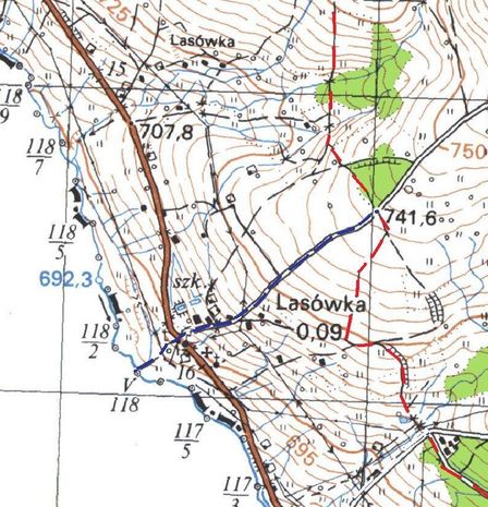 Dotyczy to przedłużenia szlaku niebieskiego: Bedrichovka (CZ) - Granica Państwa (CZ/PL) - Lasówka (kościół) o odcinek Lasówka (kościół) - Lasówka (punkt widokowy)/Szlak czerwony GSS o długości 0,5 km oraz montażu drogowskazu przy kościele w Lasówce - wskazanie drogi do Czech i do punktu widokowego przy skrzyżowaniu ze szlakiem czerwonym.