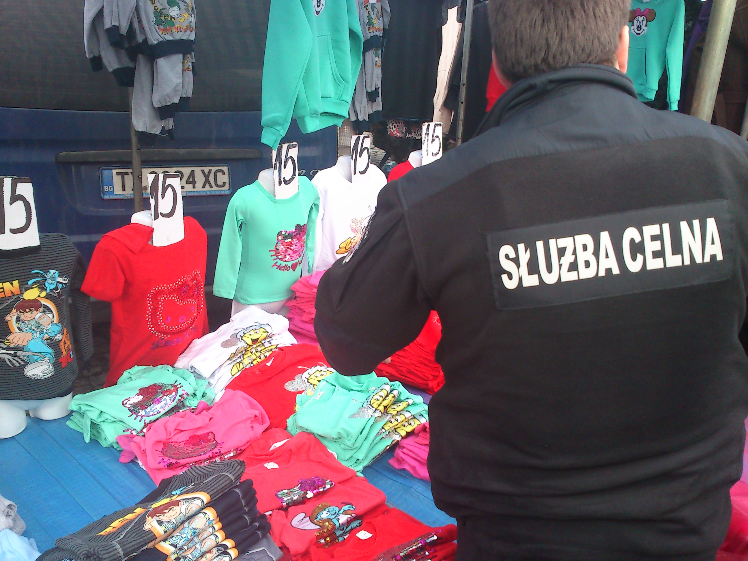 Funkcjonariusze Straży Granicznej z Placówki w Jeleniej Górze wspólnie z funkcjonariuszami z Izby Celnej Referatu Grupa Mobilna w Kłodzku – zespół kontrolny w Wałbrzychu w trakcie kontroli prowadzonej w dniu 11 grudnia br. na targowisku miejskim w Strzegomiu, zabezpieczyli niemalże 500 sztuk odzieży z podrobionymi znakami towarowymi o łącznej wartości około 29 000 zł. - Nielegalna odzież z podrobionymi znakami towarowymi sprzedawana na strzegomskim bazarze należała do obywatelki Bułgarii. W związku z podejrzeniem popełnienia czynu zabronionego ustawą Prawo własności przemysłowej zgodnie z właściwością sprawa do dalszego prowadzenia została przekazana do Referatu Dochodzeniowo Śledczego Izby Celnej we Wrocławiu. Za wprowadzanie do obrotu towarów z podrobionym znakiem towarowym oraz uczynienie z ich sprzedaży stałego źródła dochodu grożą wysokie kary grzywny, a w przypadku handlu na szeroką skalę nawet do 5 lat pozbawienia wolności. - podaje chor. SG Anna Galon - rzecznik prasowy Komendanta NoOSG
