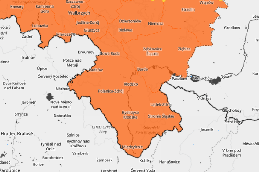 Powiat Kłodzki. Instytut Meteorologi i Gospodarki Wodnej wydał ostrzeżenie dla naszego regionu. Powiat Kłodzki został objęty ostrzeżeniem drugiego stopnia przed intensywnymi opadami. Prawdopodobieństwo wystąpienia zjawiska wynosi 85%. Prognozowane są opady deszczu, okresami o natężeniu umiarkowanym i silnym, od 25 mm do 40 mm, miejscami do 60 mm.