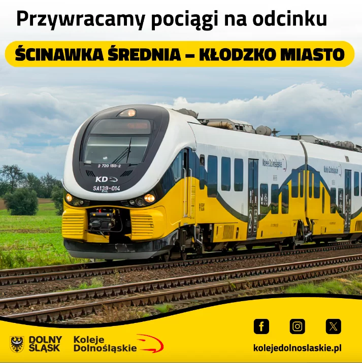 Od dziś (wtorek, 1 października) przywrócone zostały połączenia kolejowe na odcinku Ścinawka Średnia – Kłodzko Miasto. To oznacza, że naszymi pociągami można już podróżować bez utrudnień z Wałbrzycha przez Nową Rudę do Kłodzka.