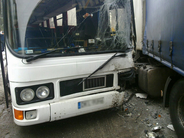 Autobus zderzył się z ciężarówką
