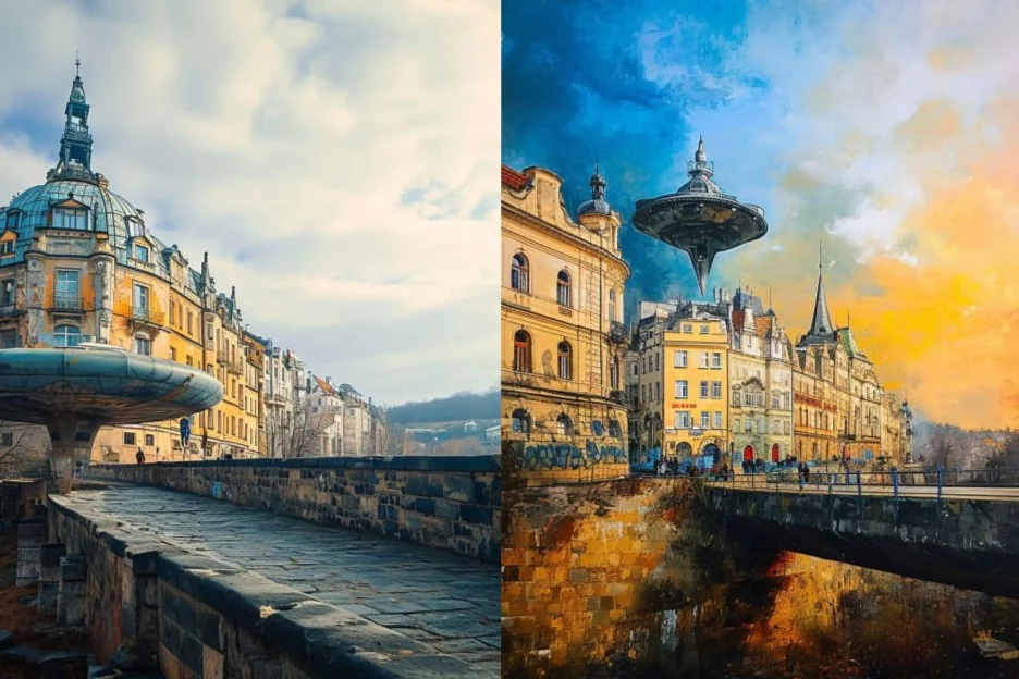 Czytelnik przygotował dla nas serię grafik przedstawiających Kłodzko w czasie inwazji Marsjan. Grafiki zostały wygenerowane przy pomocy sztucznej inteligencji (AI).
