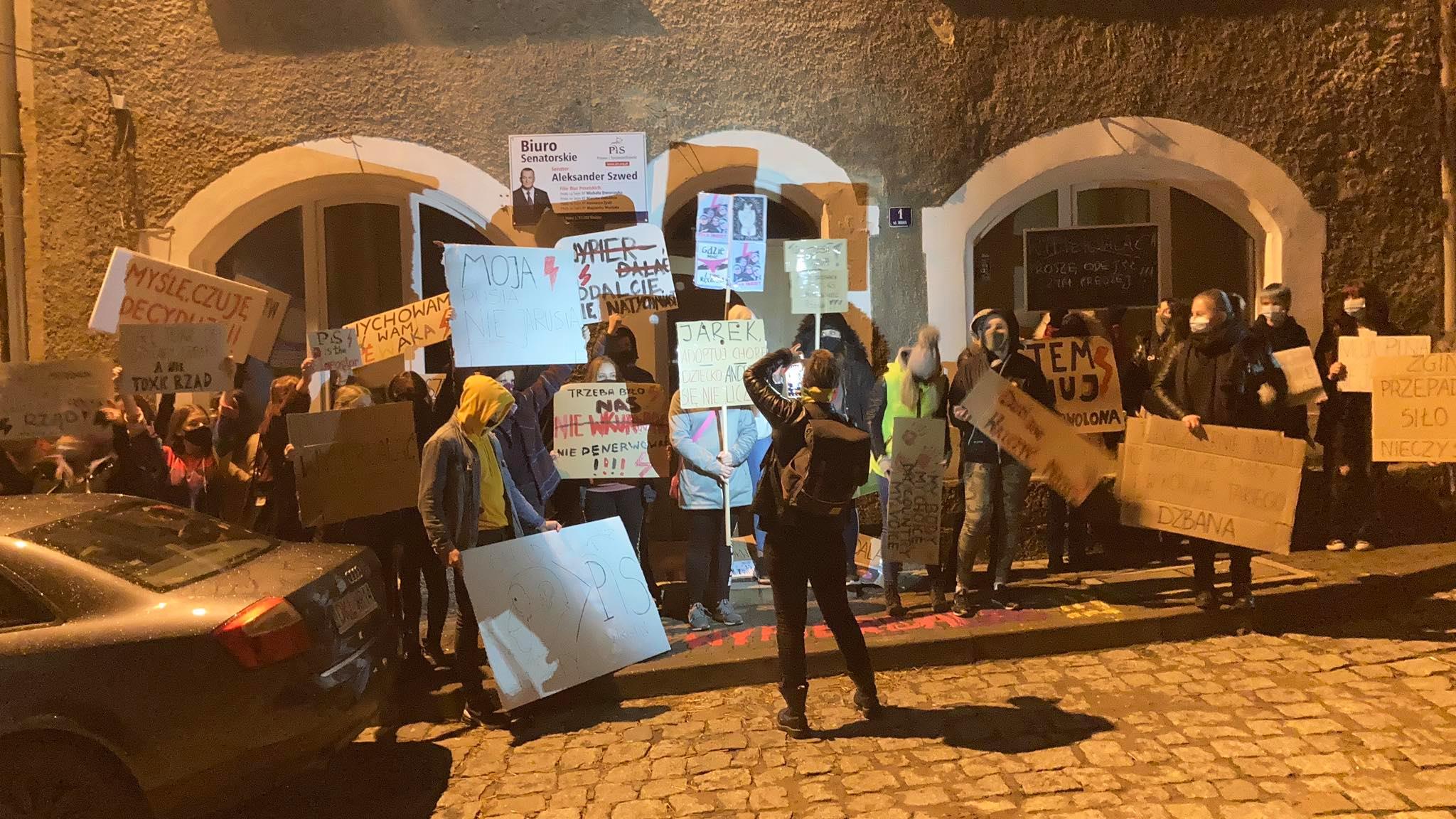 Protest przed biurem parlamentarzysty z Prawa i Sprawiedliwości rozpoczął się we wtorek, 27 października, o godz. 19. Czarny spacer przeszedł do Rynku.