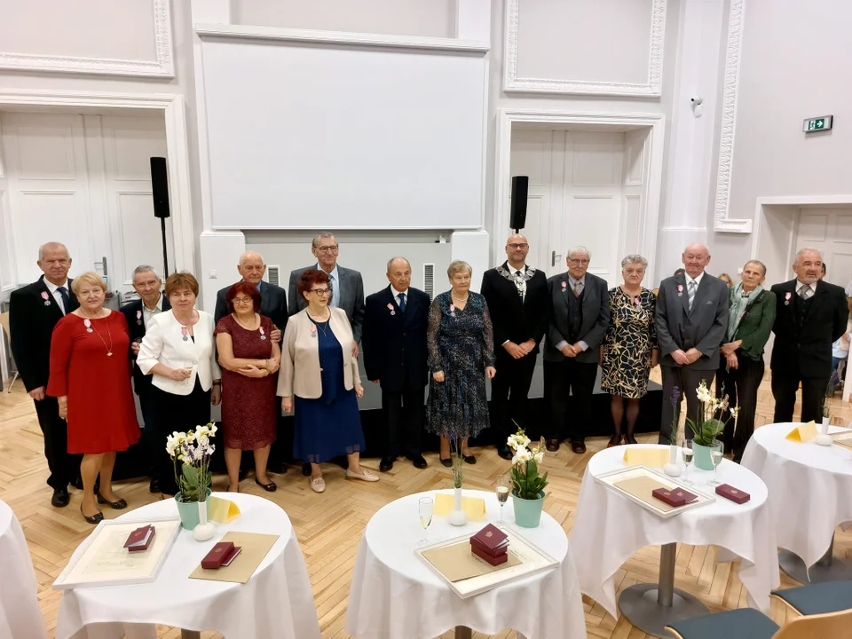 Kłodzko. Uroczystość jubileuszu 50 lat pożycia małżeńskiego odbyła się w sobotę, 12 października, w Centrum Aktywności Lokalnej. Burmistrz Michał Piszko udekorował jubilatów medalami "Za długoletnie pożycie małżeńskie", złożył życzenia, wręczył kwiaty i oprawione kopie aktów zawarcia związków małżeńskich.